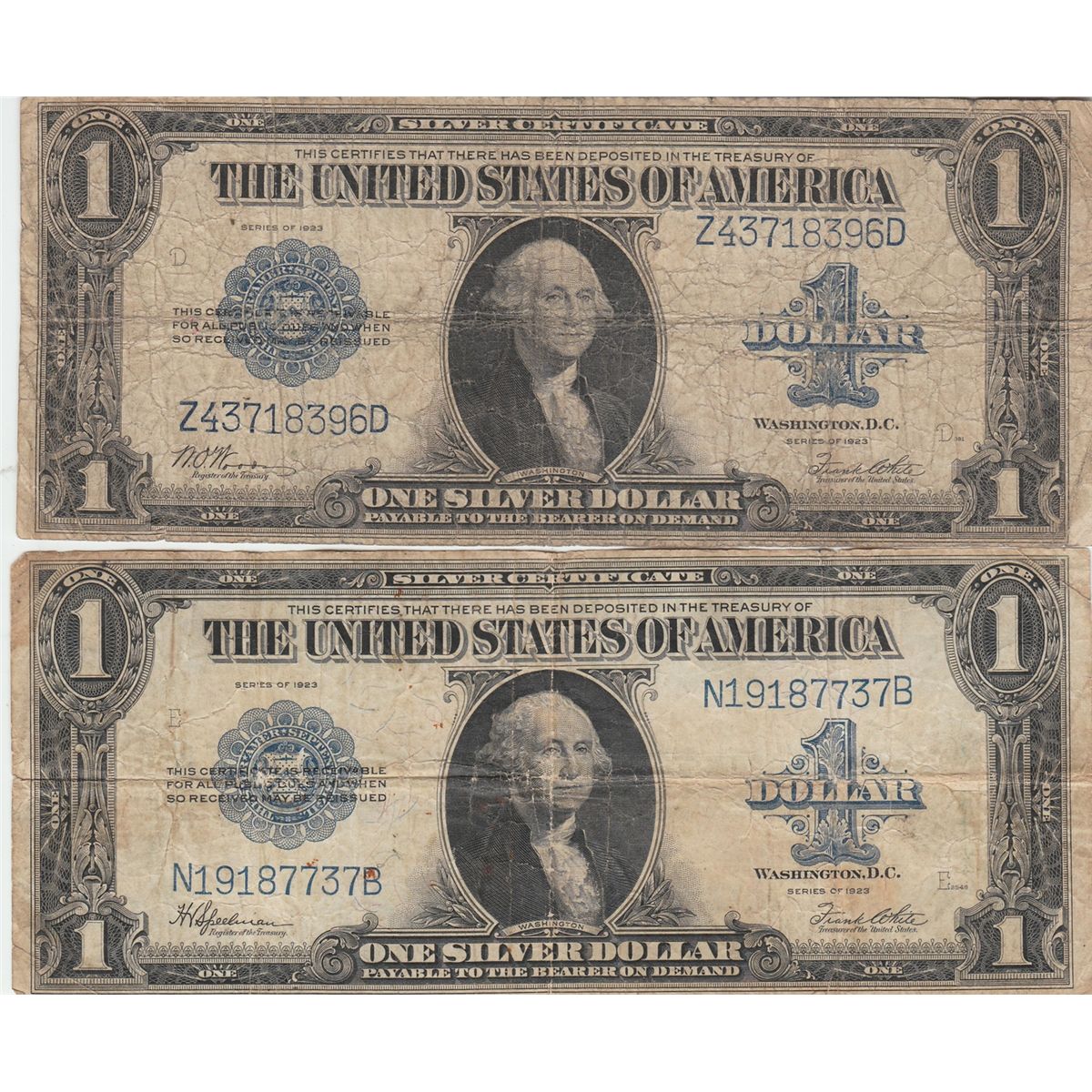 LOT OF 2 $1 1923 HORSE BLANKETS SILVER CERTIFICATES