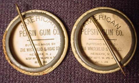 LOT OF 2 1896 CELLULOID FIREMAN PINBACK BUTTONS - PEPSIN GUM CO.