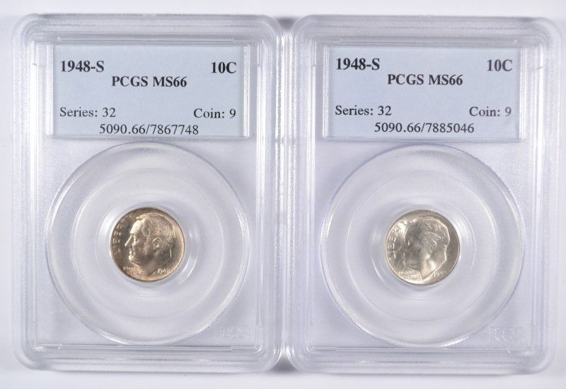 LOT OF ( 2 ) 1948-S ROOSEVELT DIMES, PCGS MS-66!