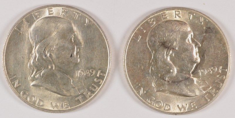 LOT OF ( 2 ) 1949-D FRANKLIN HALF DOLLARS, MS-63