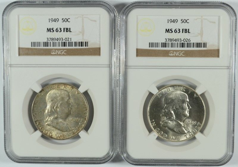 LOT OF ( 2 ) 1949 FRANKLIN HALF DOLLARS, NGC MS-63 FBL