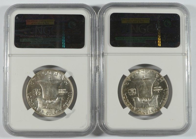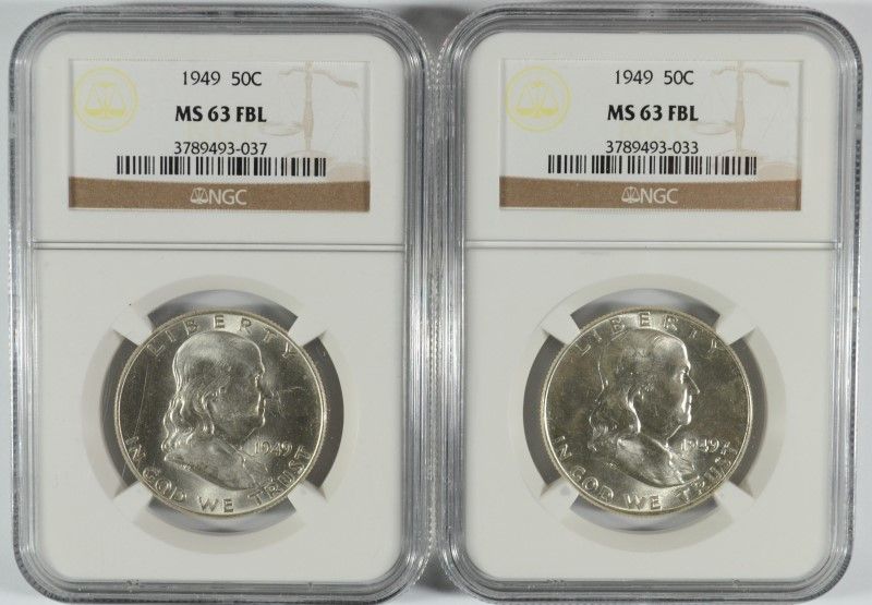 LOT OF ( 2 ) 1949 FRANKLIN HALF DOLLARS, NGC, MS-63 FBL