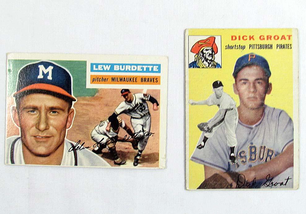 LOT OF 2 1950'S TOPPS BASEBALL CARDS BURDETTE AND GROAT - 1956 no. 219 and 1954 no.43.