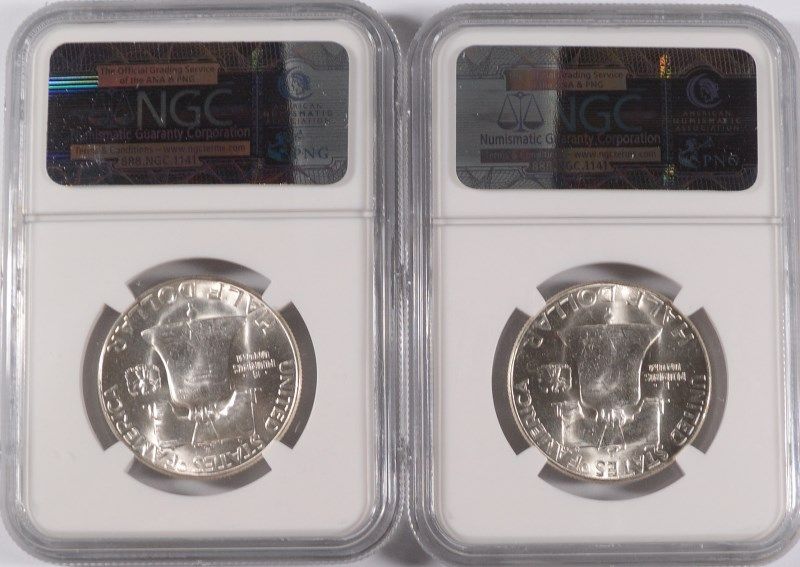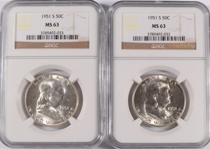 LOT OF ( 2 ) 1951-S FRANKLIN HALF DOLLARS, NGC MS-63