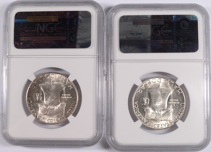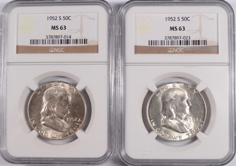 LOT OF (2 ) 1952-S FRANKLIN HALF DOLLARS, NGC MS-63
