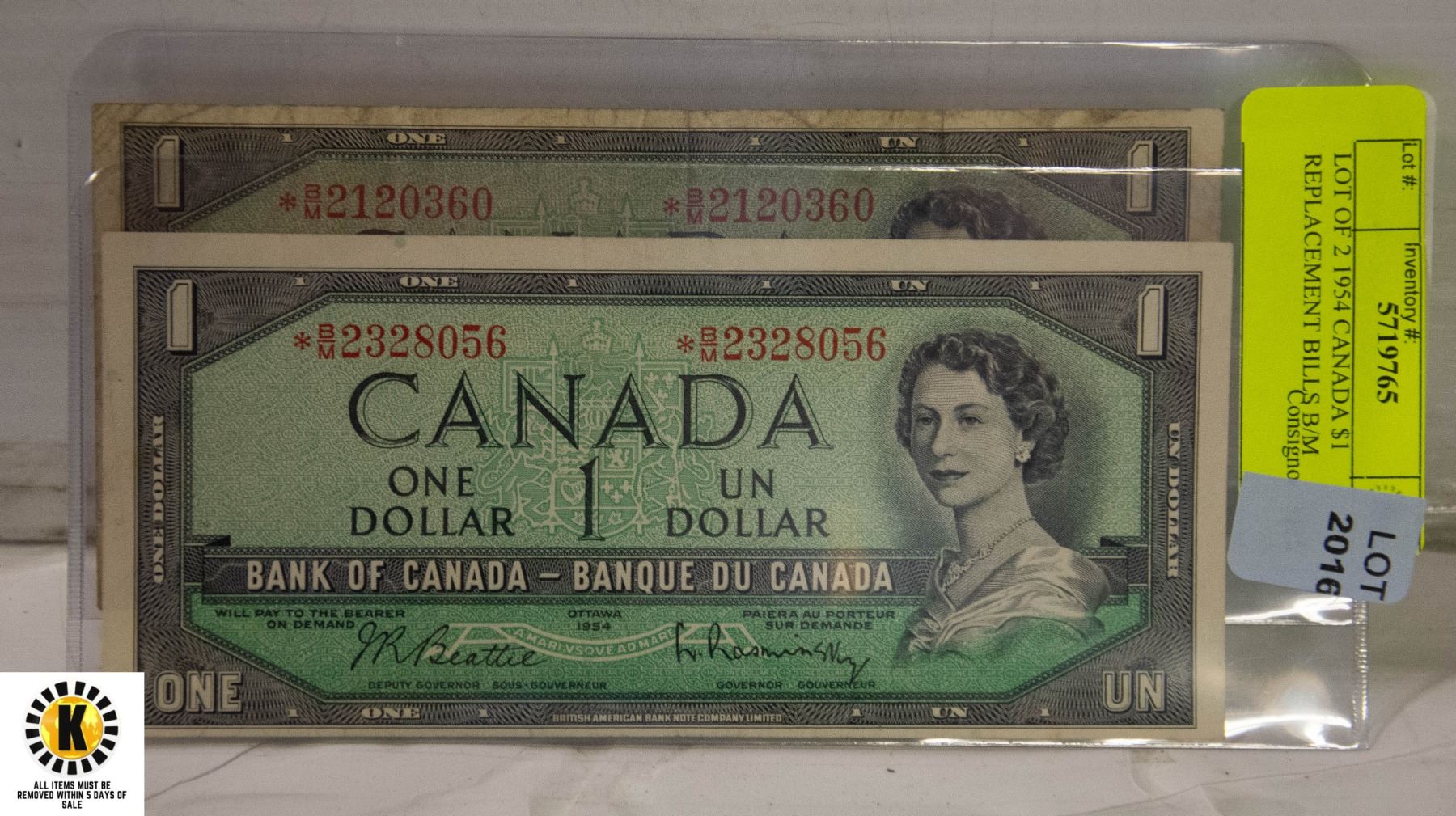 LOT OF 2 1954 CANADA $1 REPLACEMENT BILLS B/M
