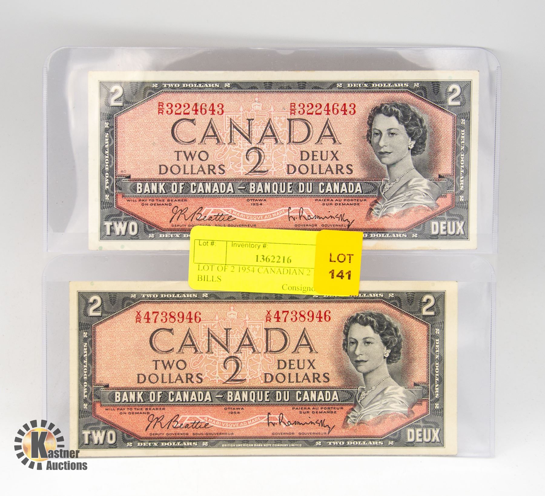 LOT OF 2 1954 CANADIAN 2 DOLLAR BILLS