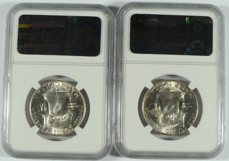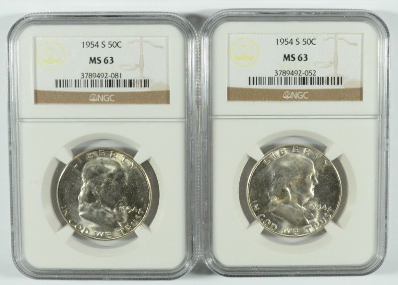 LOT OF ( 2 ) 1954-S FRANKLIN HALF DOLLAR, NGC MS-63