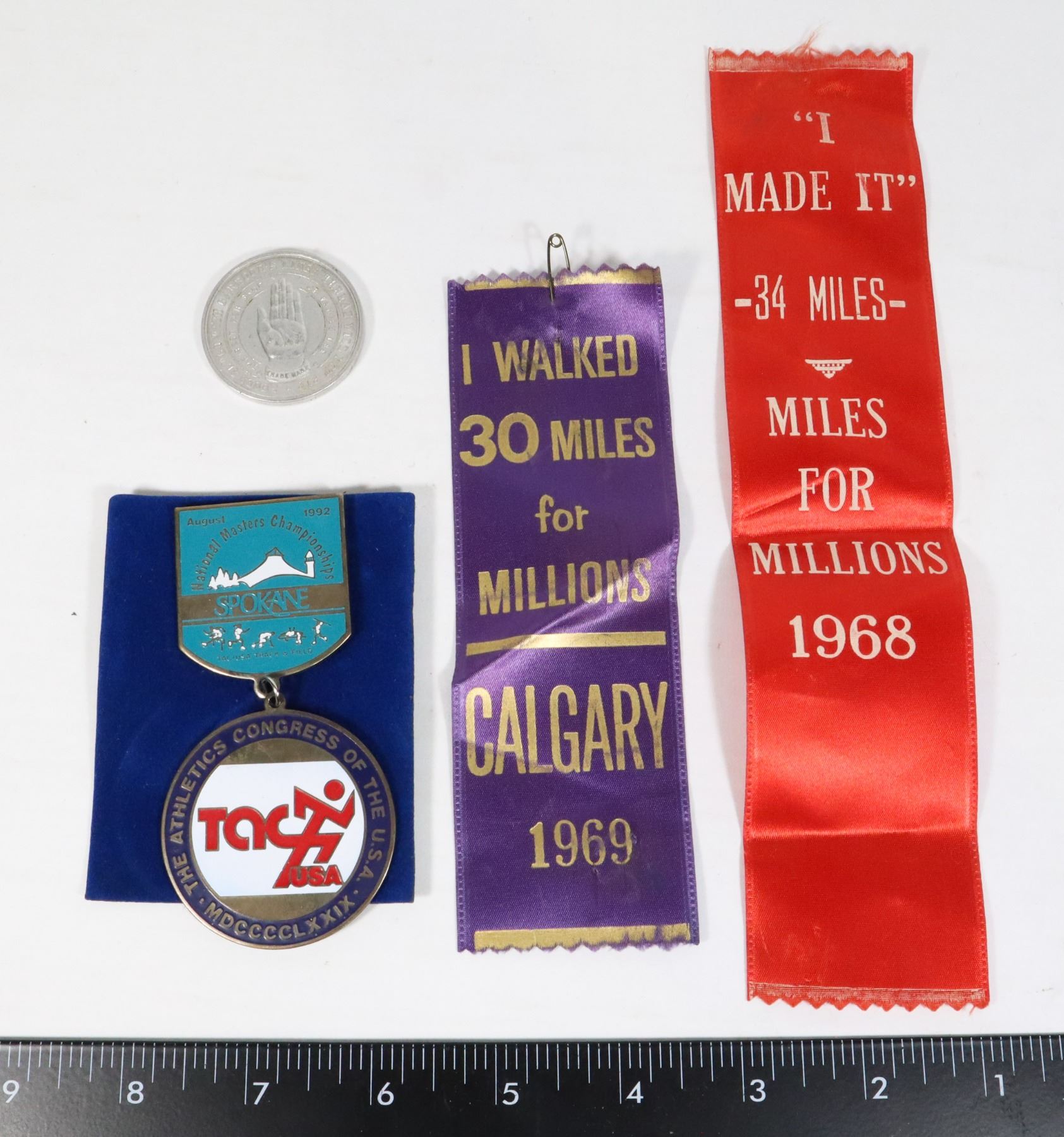 MEDAL THE ATHLETICS CONGRESS OF THE U.S.A. 1992 SPOKANE WASHINGTON AND ADVERTISING TOKEN GOODYEAR WELT SHOES