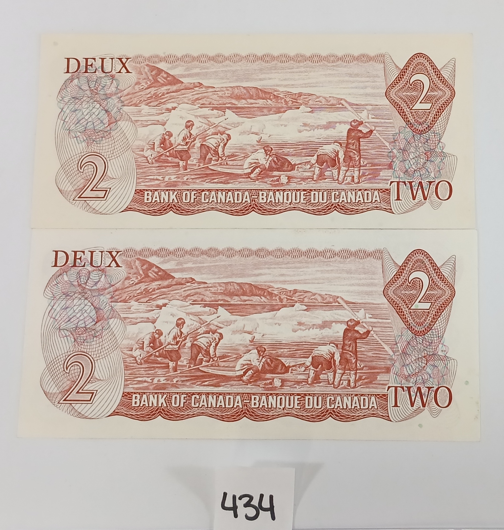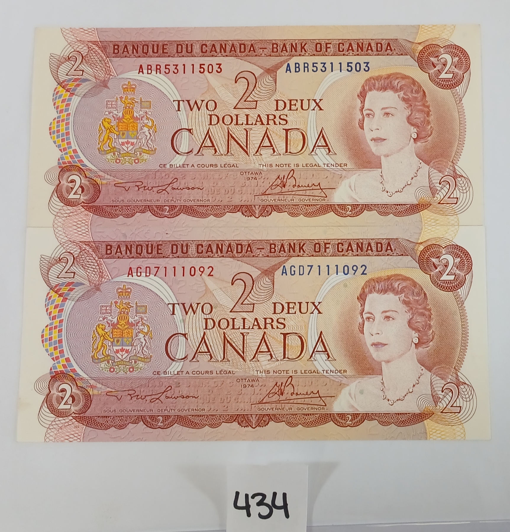LOT OF 2 - 1974 CDN $2 BANKNOTES - UNCIRCULATED