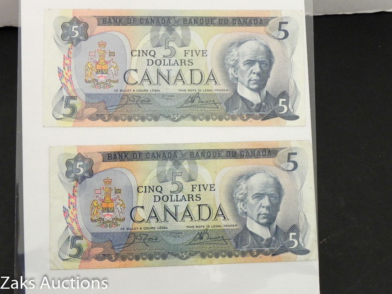 LOT OF 2 1979 $5 DOLLAR CANADA BANK NOTES