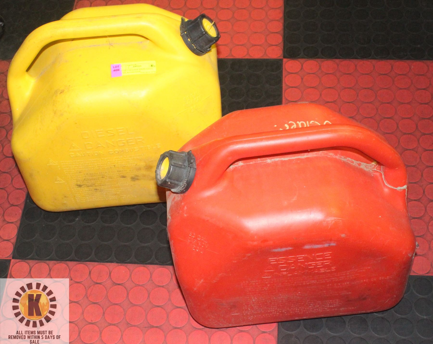 LOT OF 2 20 LITER JERRY CANS, DIESEL & GASOLINE