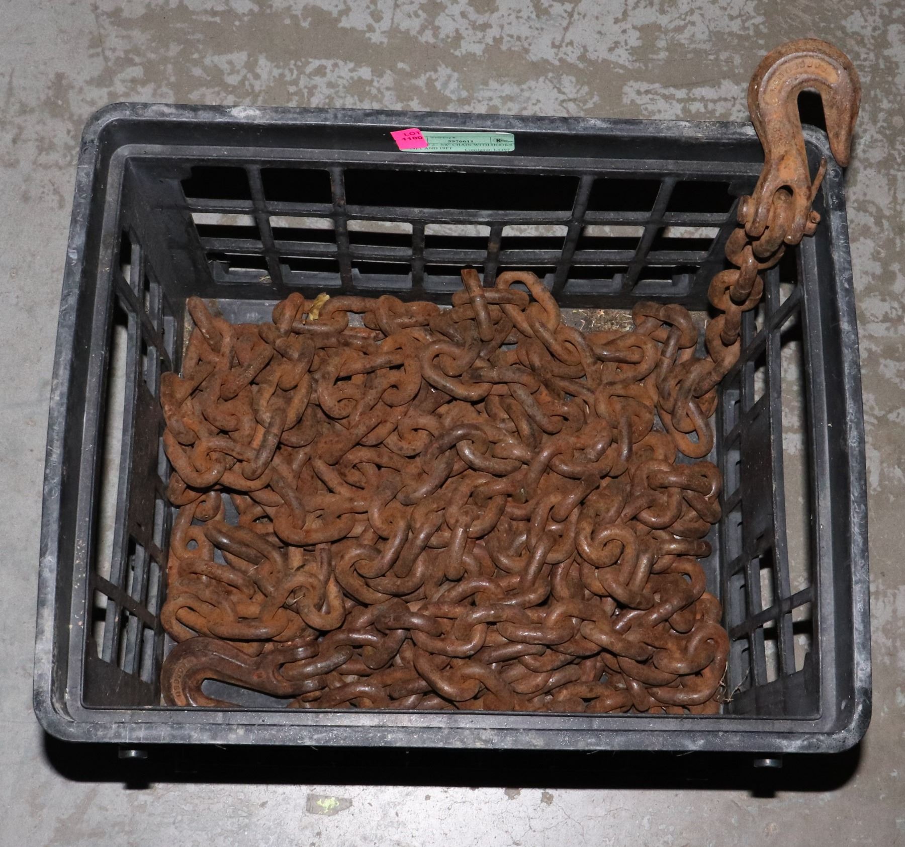 LOT OF 2 - 3/8" CHAIN WITH HOOKS 14FT AND 19FT