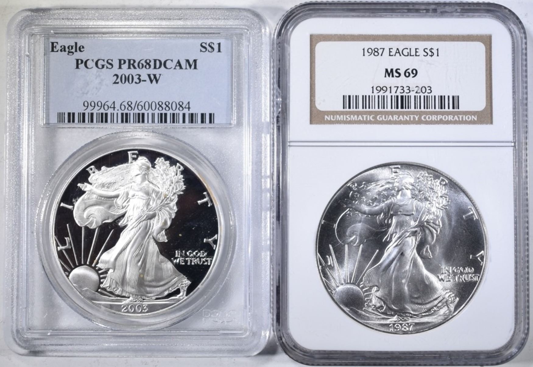 1987 NGC MS-69 & 2003-W PCGS PR-68 DCAM. ESTIMATE $125 - $150.