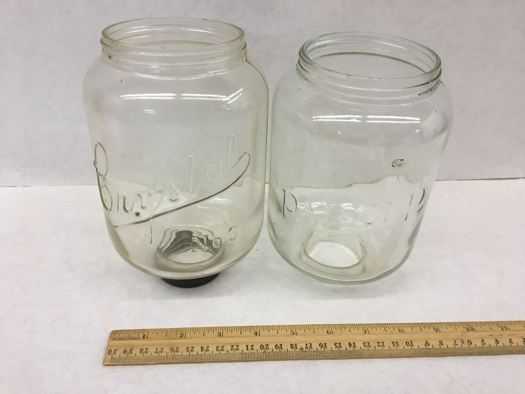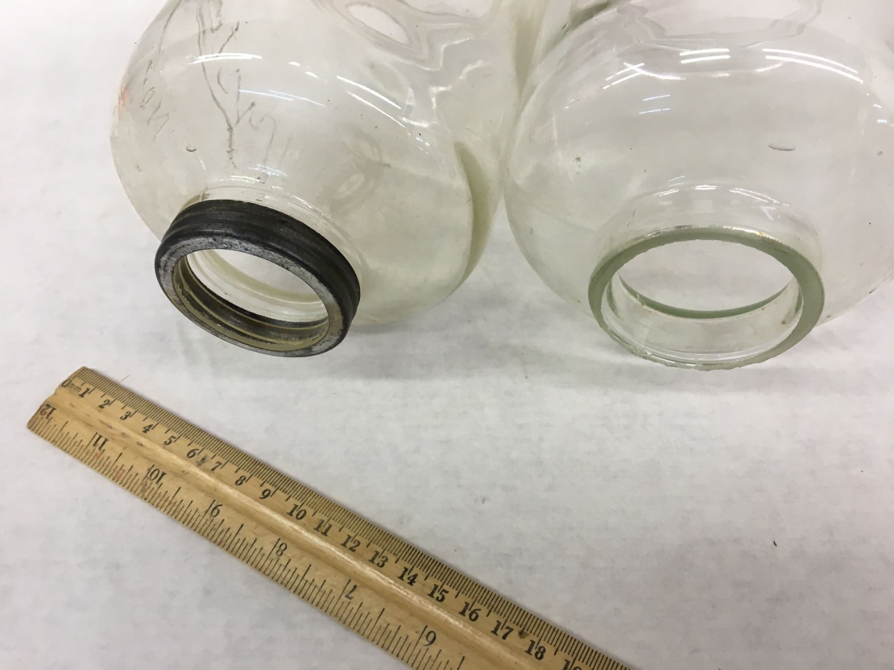 LOT OF 2 ANTIQUE COFFEE GRINDER GLASS GLOBES PARKER AND CRYSTAL