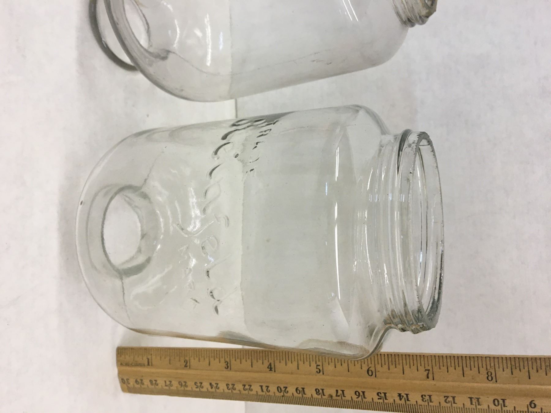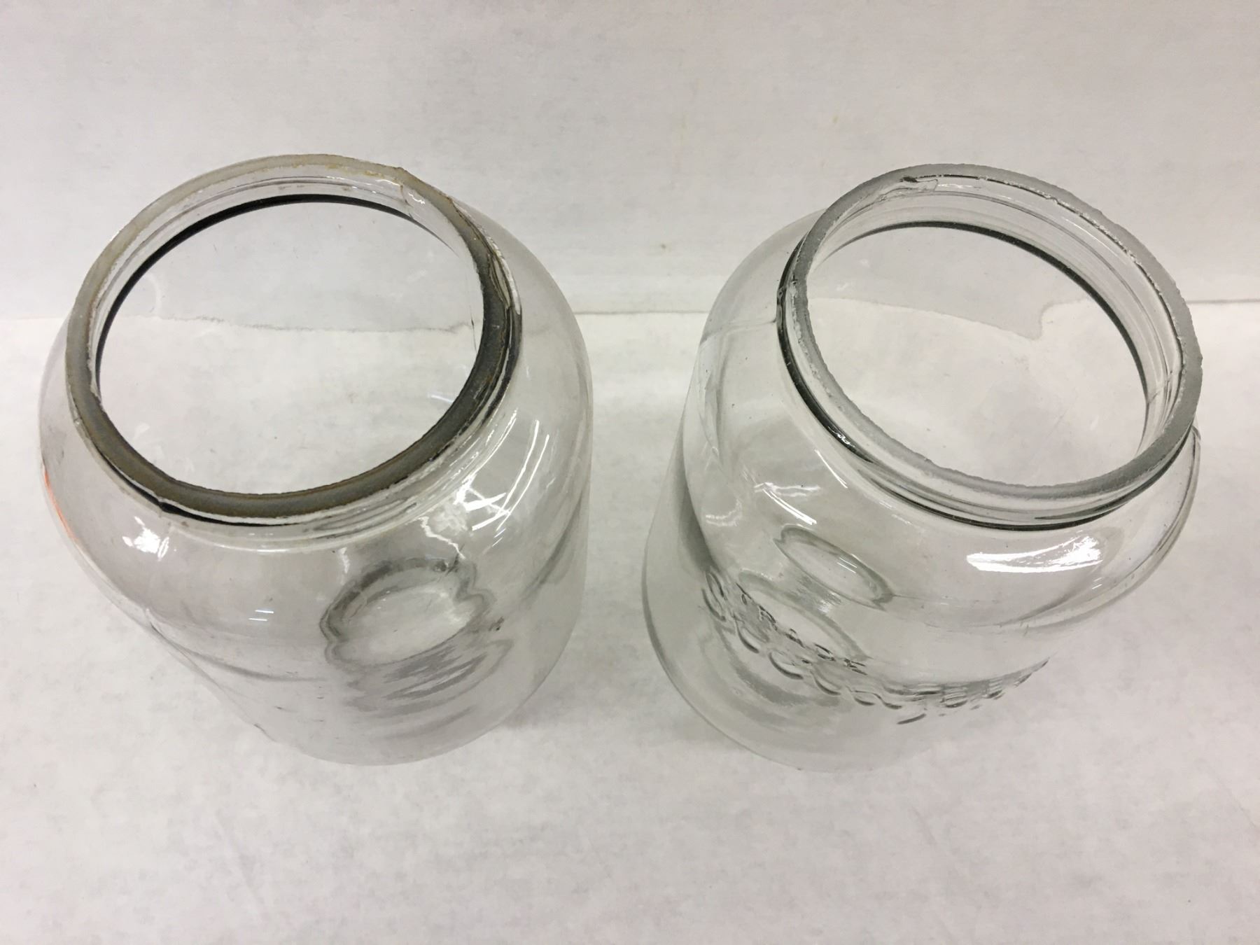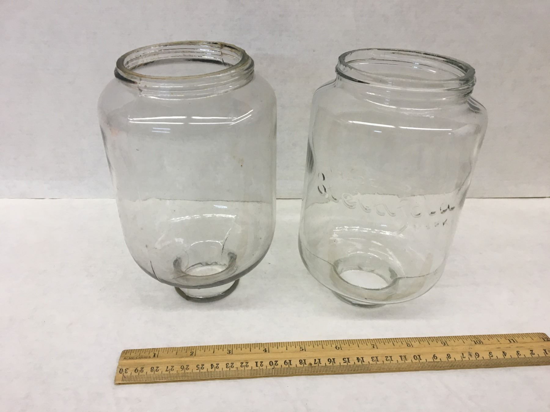 LOT OF 2 ANTIQUE COFFEE GRINDER GLASS GLOBES STEINFELD AND UNNAMED
