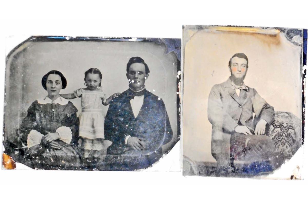 LOT OF 2 ANTIQUE TIN TYPE PHOTOS OF FAMILIES