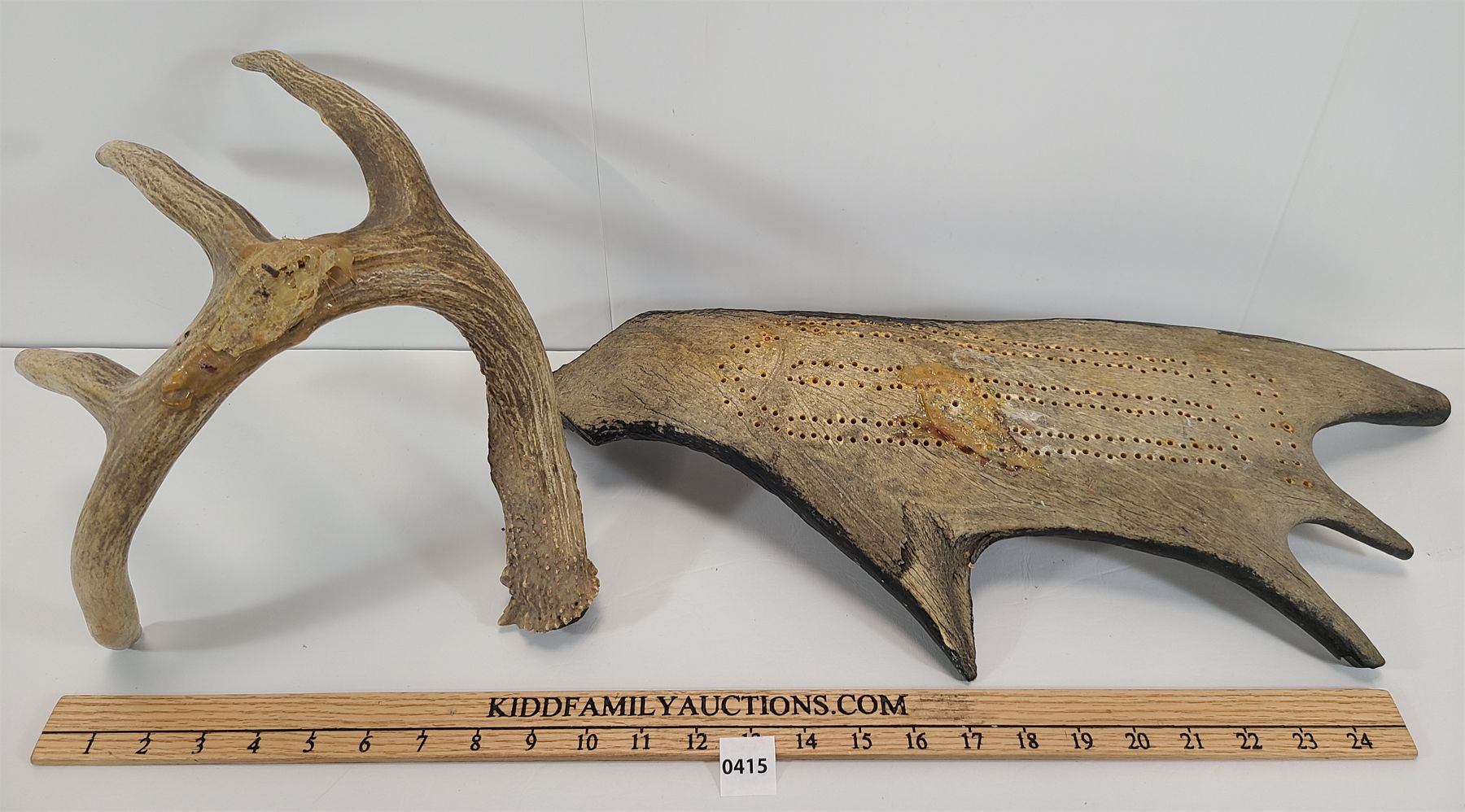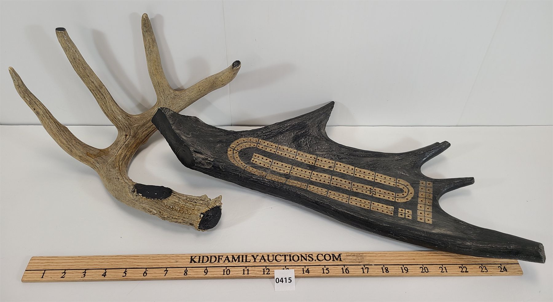 NOTE: DEER ANTLERS FORM BASE FOR CRIBBAGE BOARD
