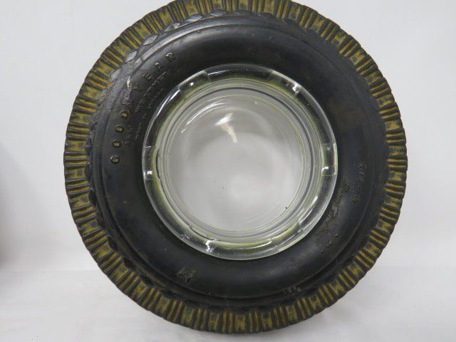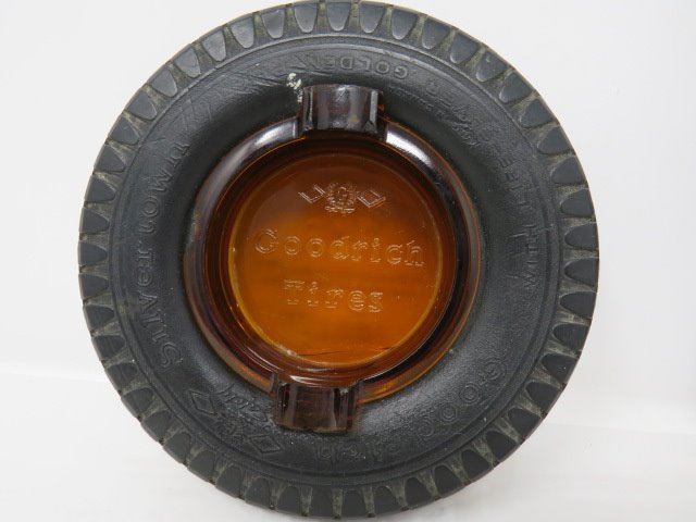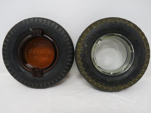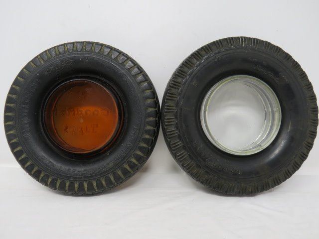 LOT OF 2 ASHTRAYS (GOODRICH SILVERTOWN W/RARE AMBER COLORED ASHTRAY AND GOODYEAR ALL WEATHER)