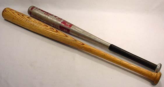 LOT OF 2 BASEBALL BATS - WOOD AND METAL