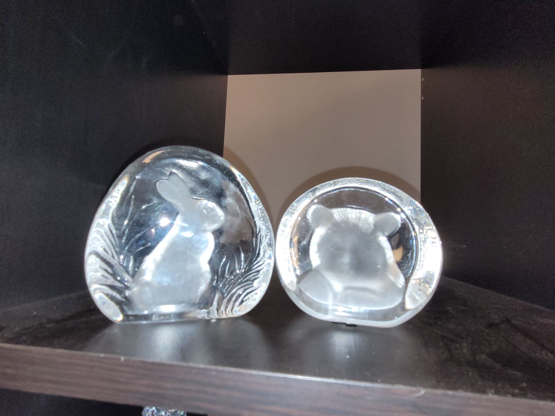 LOT OF 2 BEAUITFUL ETCHED GLASS ANIMAL DECOR. PICTURES DID NOT GRAB THE ESSENCE OF THESE 2! AS IS WHERE IS. NO REFUND. NO RETURNS