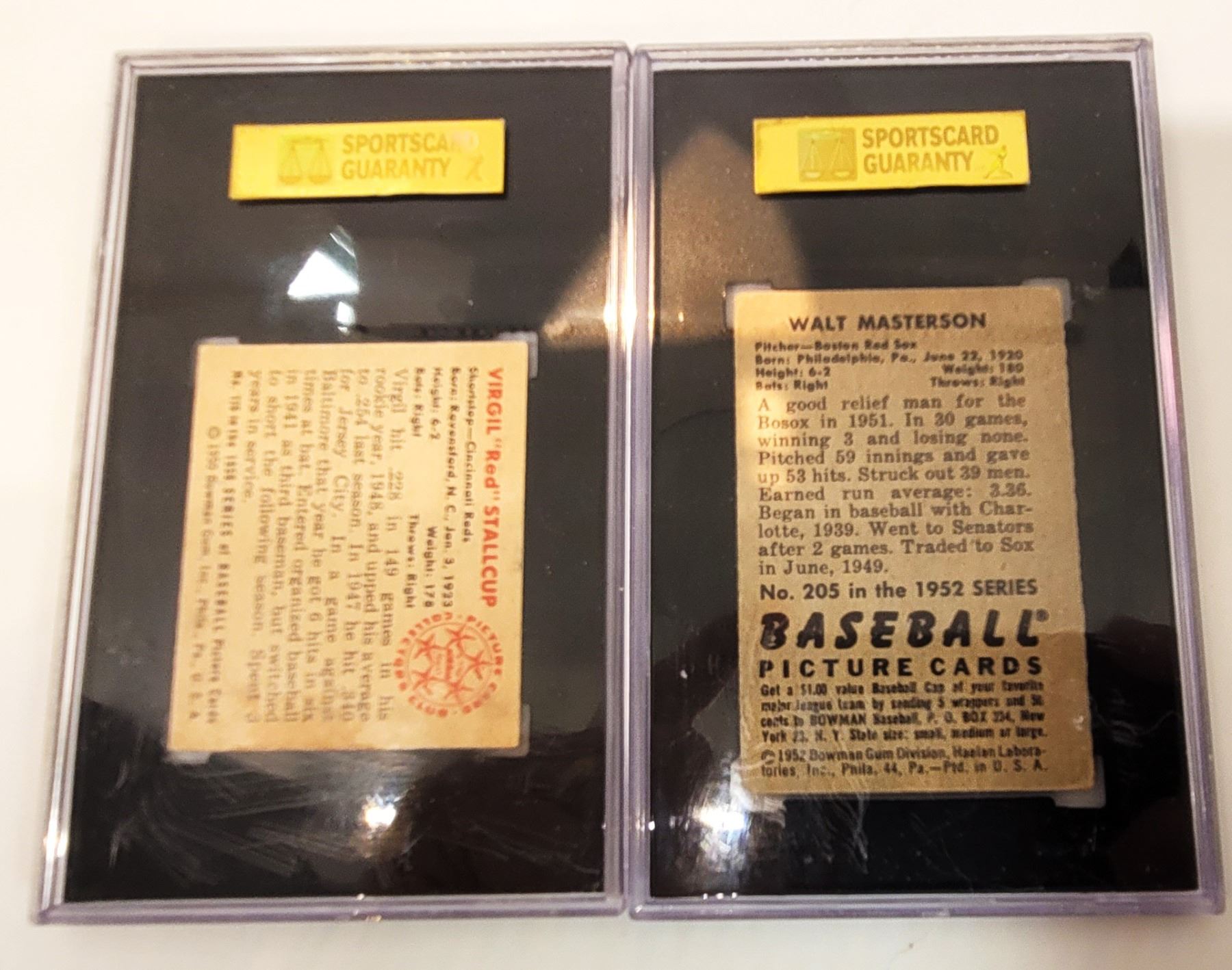 HAVE BEEN PROFESSIONALLY GRADED, 1950 VIRGIL "RED" STALLCUP & 1952 WALT MASTERSON BASE BALL PLAYERS. COLECTIBLES
