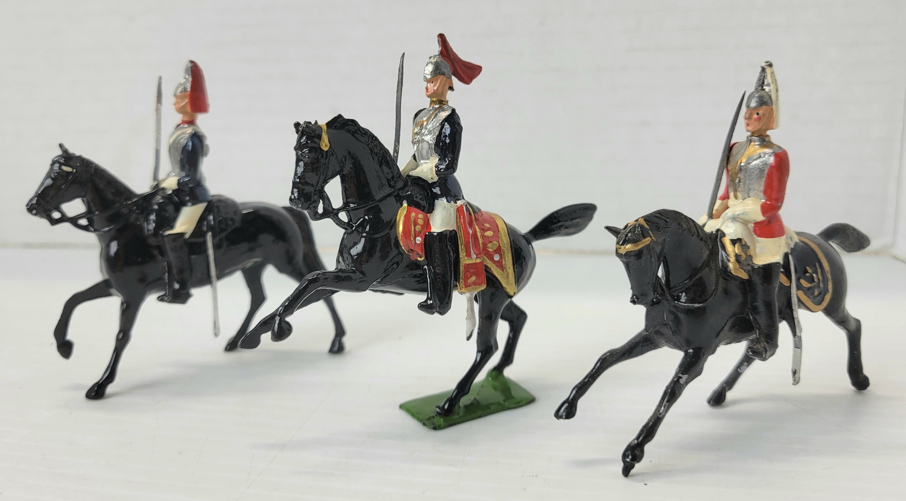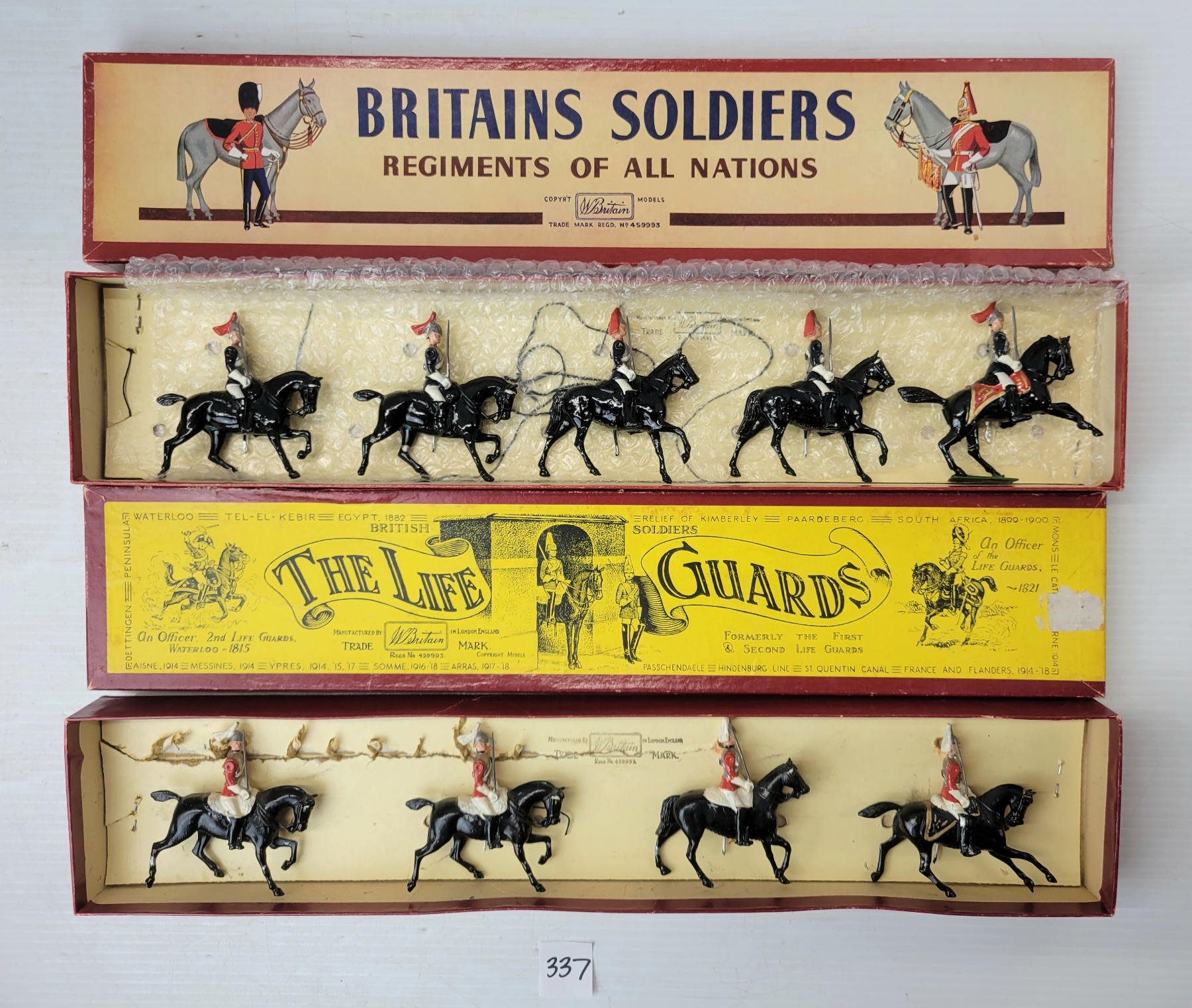 LOT OF 2 - BRITAINS SOLDIERS LEAD FIGURES - NO. 1 LIFE GUARDS & 2 ROYAL HORSE GUARDS