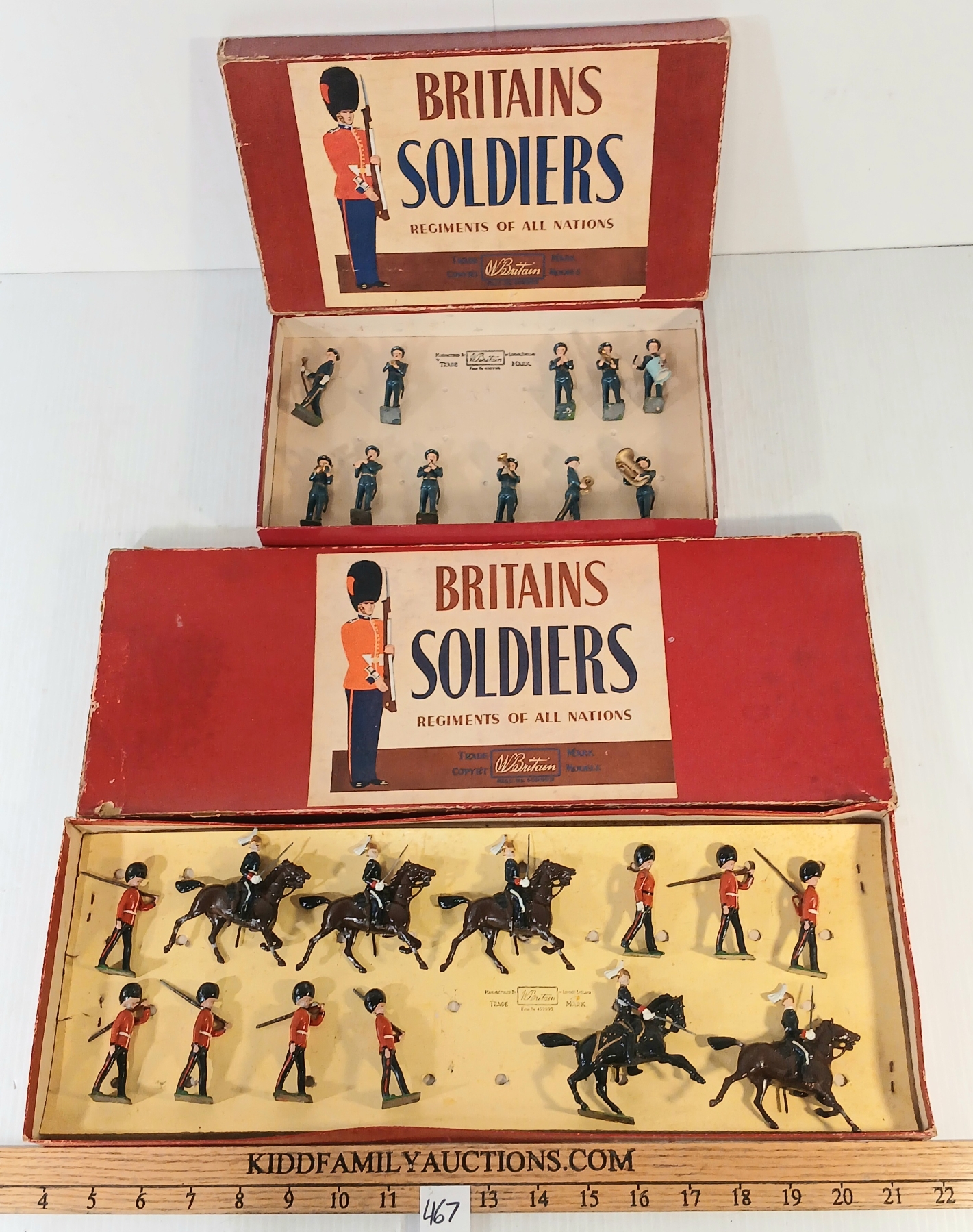 LOT OF 2 - BRITAINS SOLDIERS LEAD FIGURES - NO. 1527 R.A.F. BAND & 1637 CDN ARMY GOVERNOR GUARDS
