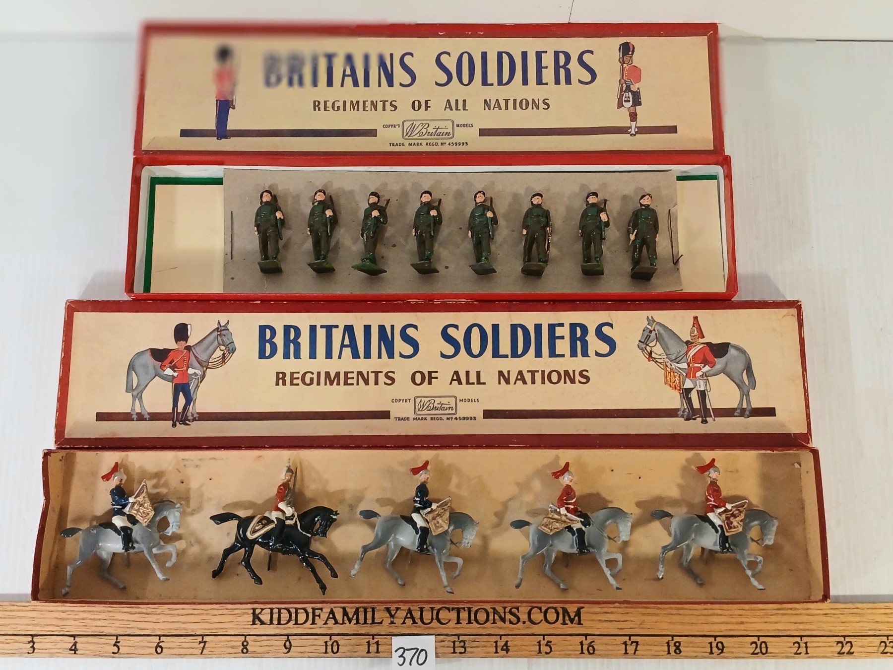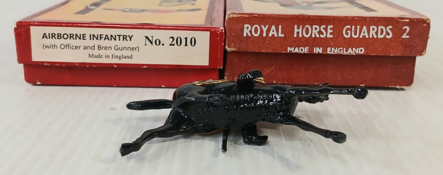 LOT OF 2 - BRITAINS SOLDIERS LEAD FIGURES - NO. 2 ROYAL HORSE GUARDS & 2010 AIRBORNE INFANTRY