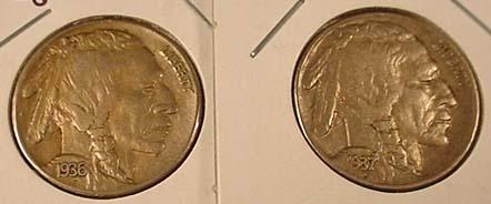 LOT OF 2 BUFFALO NICKELS - 1937-P XF and 1936-S AU