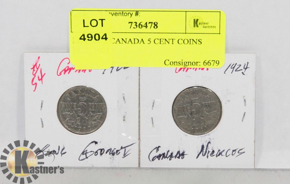 LOT OF 2 CANADA 5 CENT COINS 1922, 1924