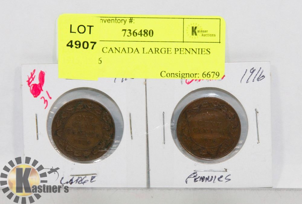 LOT OF 2 CANADA LARGE PENNIES 1915, 1916