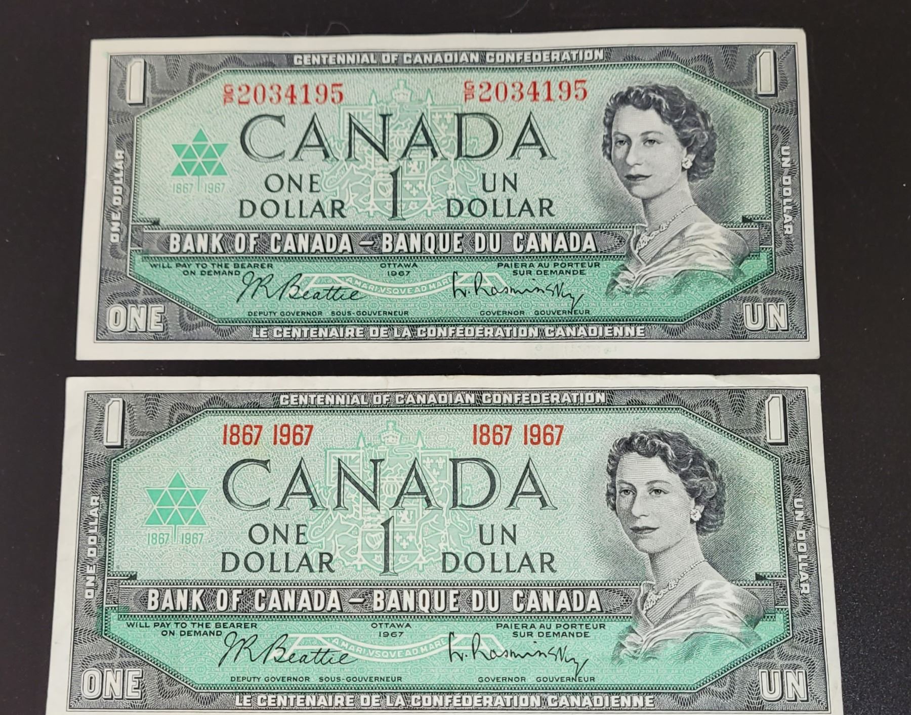 BANKNOTES, ONE W/SERIAL NUMBER AND 1 WITHOUT. CURRENCY