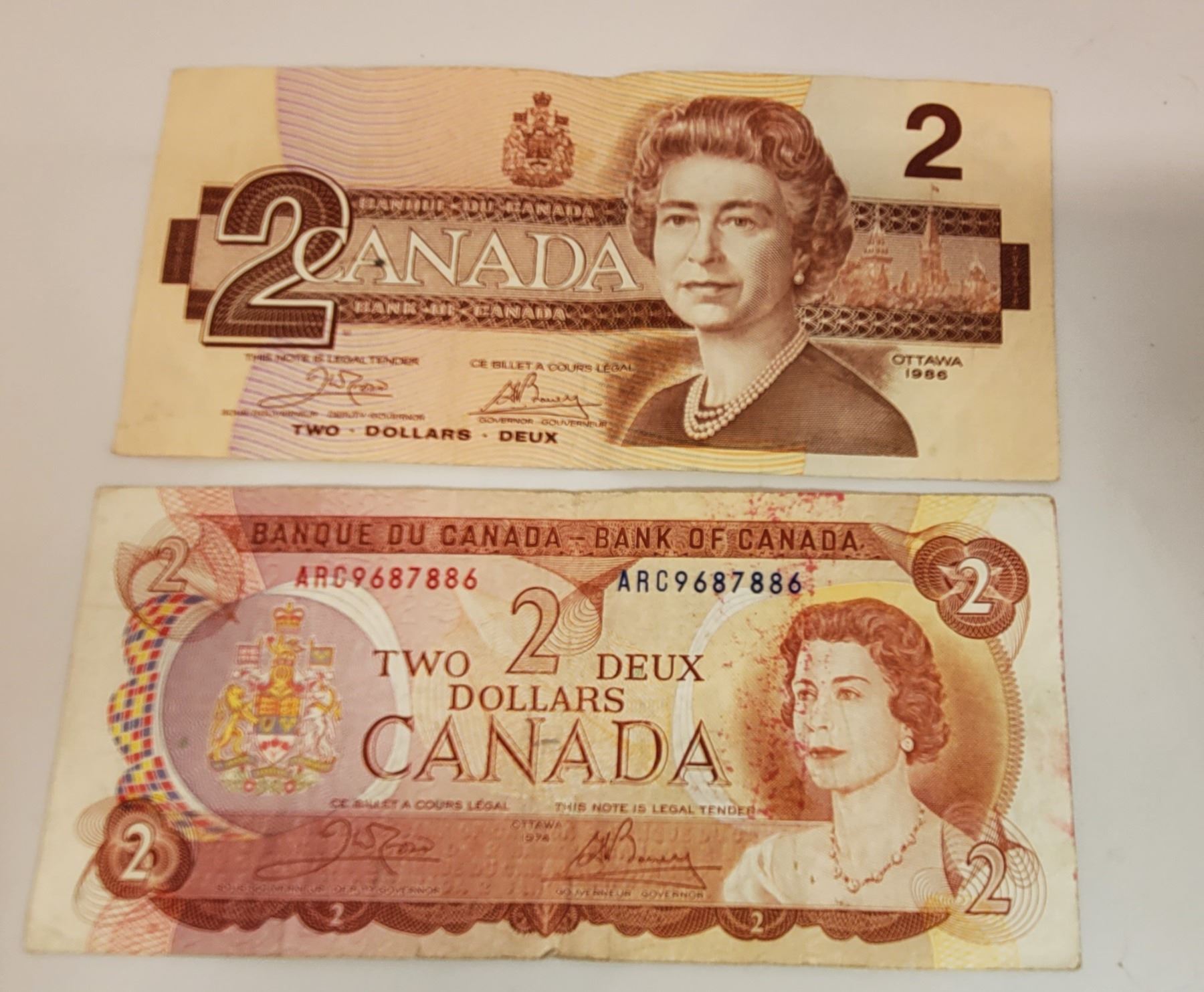 LOT OF 2 CANADIAN $2.00 BANKNOTES , 1974 &