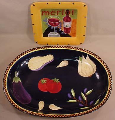 LOT OF 2 CERAMIC PLATTERS - 1 HUGE BOWL SHAPED - Small is Approx. 11" x 11", Huge is Approx. 20.5" x 15" x 3" Deep