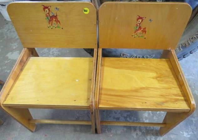LOT OF 2 CHILDREN'S MATCHING DEER CHAIRS (WOOD) *VINTAGE*