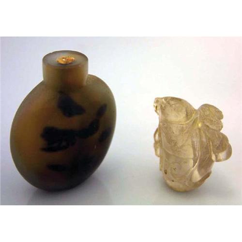 LOT OF (2) CHINESE SNUFF BOTTLES including chalcedony and quartz