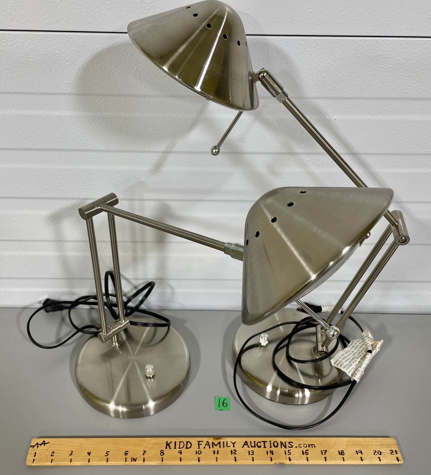 LOT OF 2 CHROME DESK LAMPS - WORKING