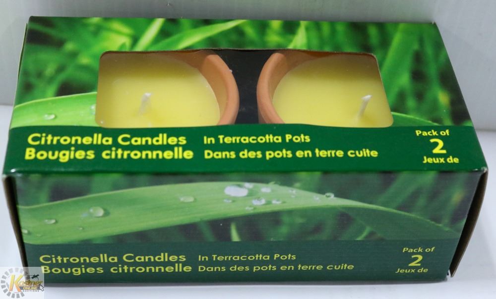 LOT OF 2 CITRONELLA CANDLES IN TERRACOTTA POTS