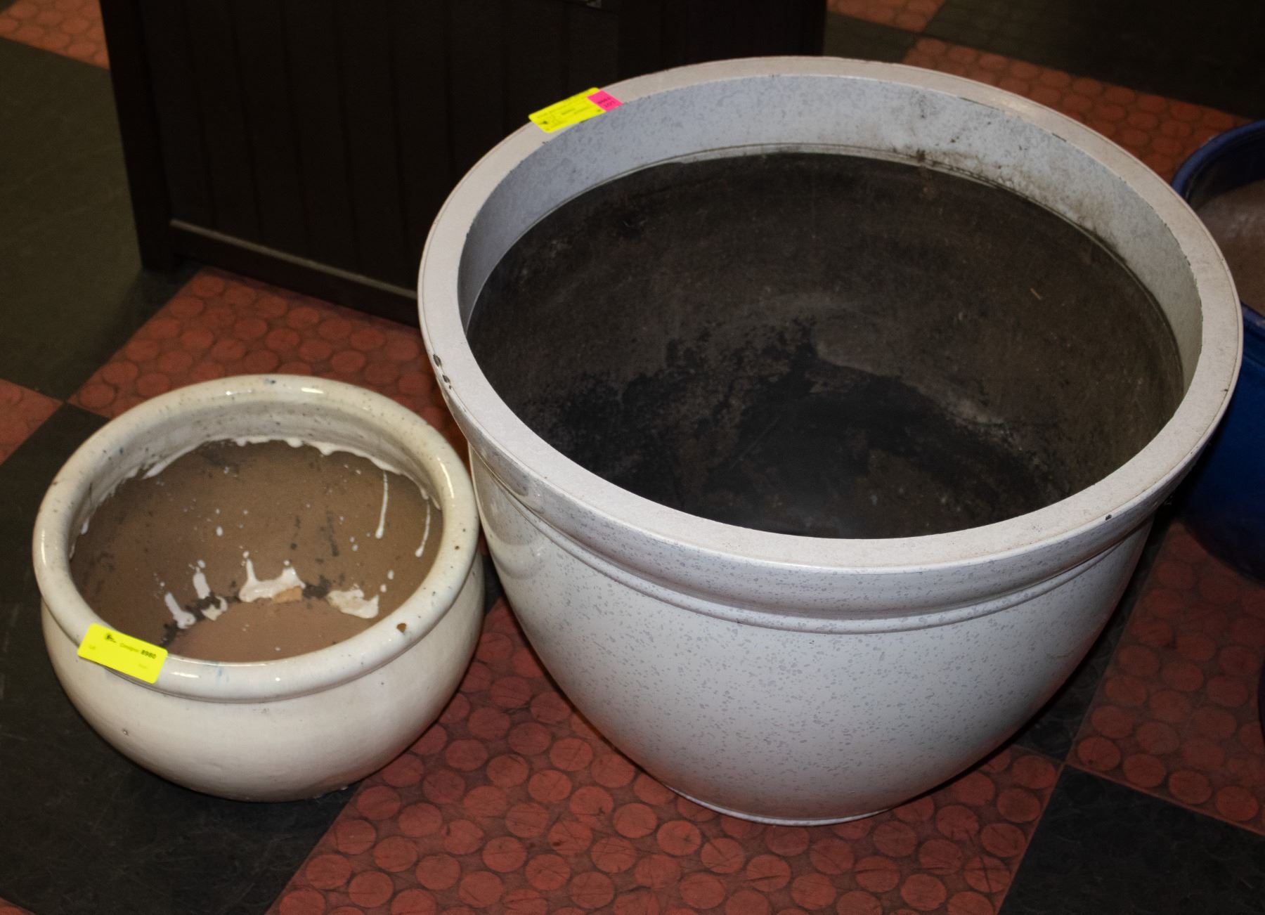LOT OF 2 CLAY POTS ONE BEIGE AND ONE GREY