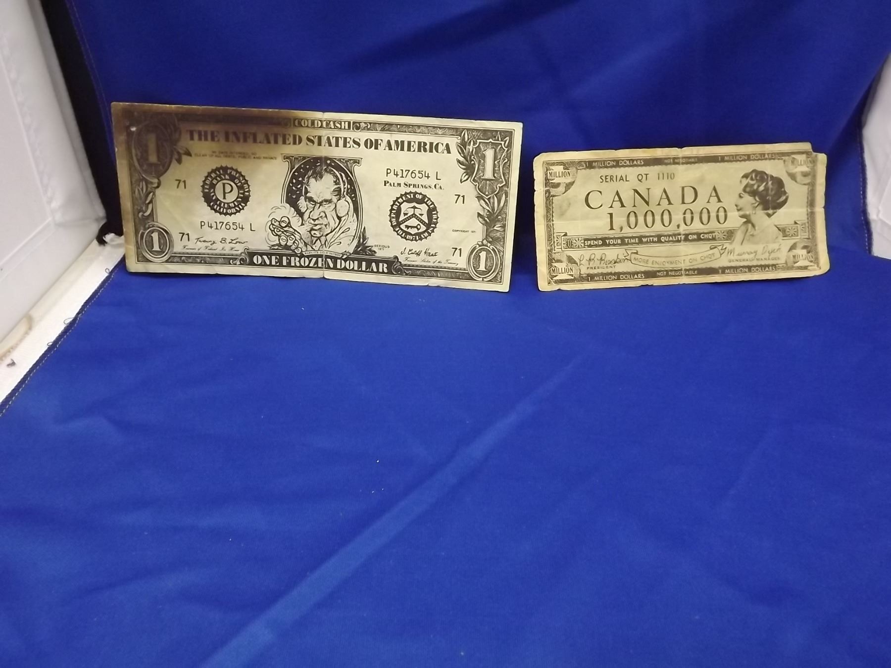 LOT OF 2 CNDN & US FUNNY MONEY BILLS. CNDN $1,000,000 & US $1