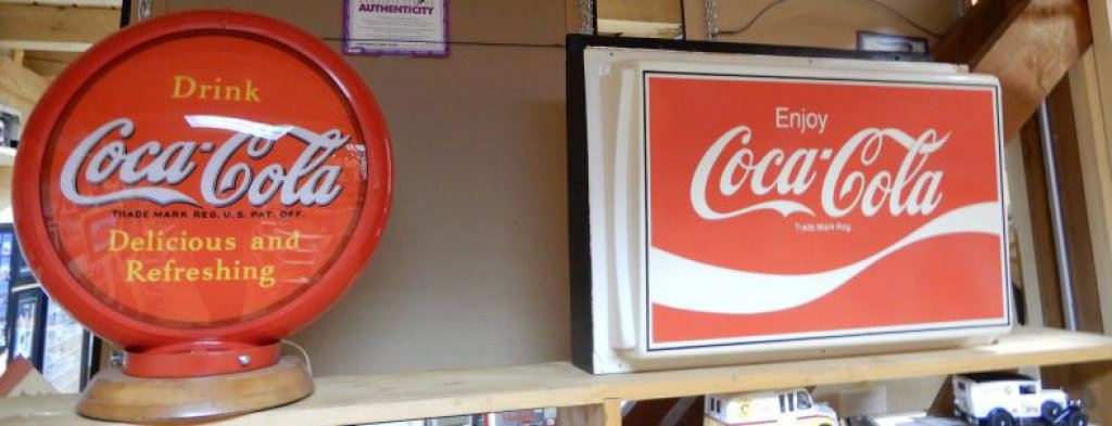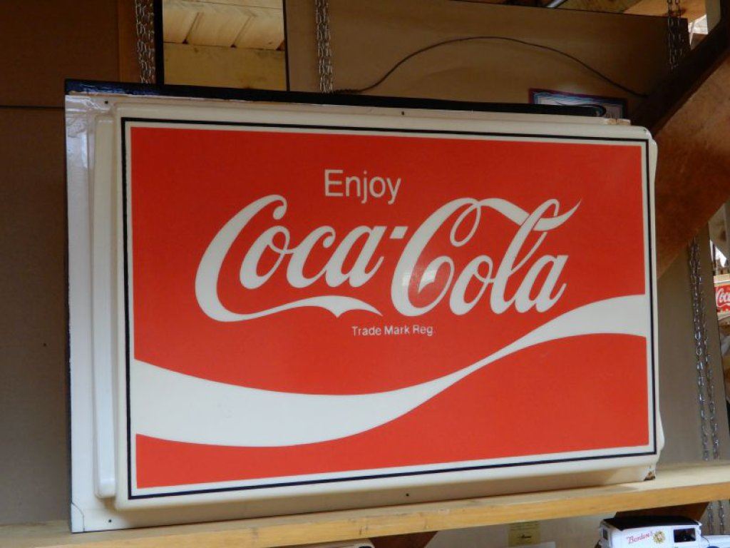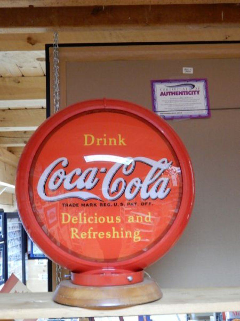 LOT OF 2 COCA-COLA GLOBE & PLASTIC SIGN GLOBE - PLASTIC LENSE ON WOODEN BASE- ELECTIFIED- SIGN - ON WOOD BASE LOCATION: UPPER BACKROOM