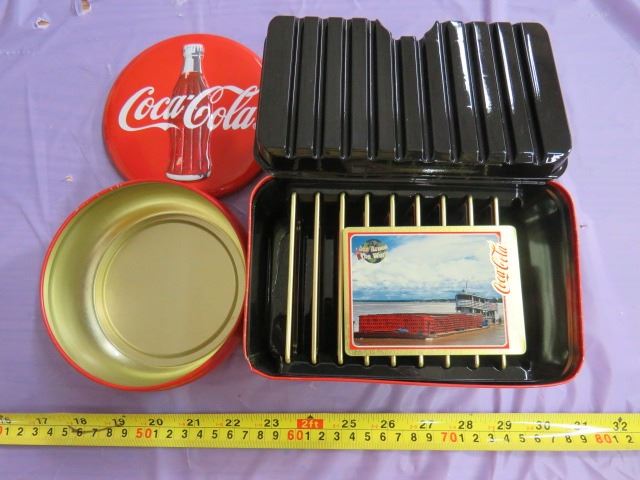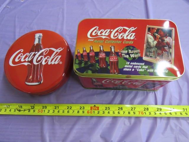 LOT OF 2 COKE TINS (1 HAS METAL COLLECTOR CARDS)