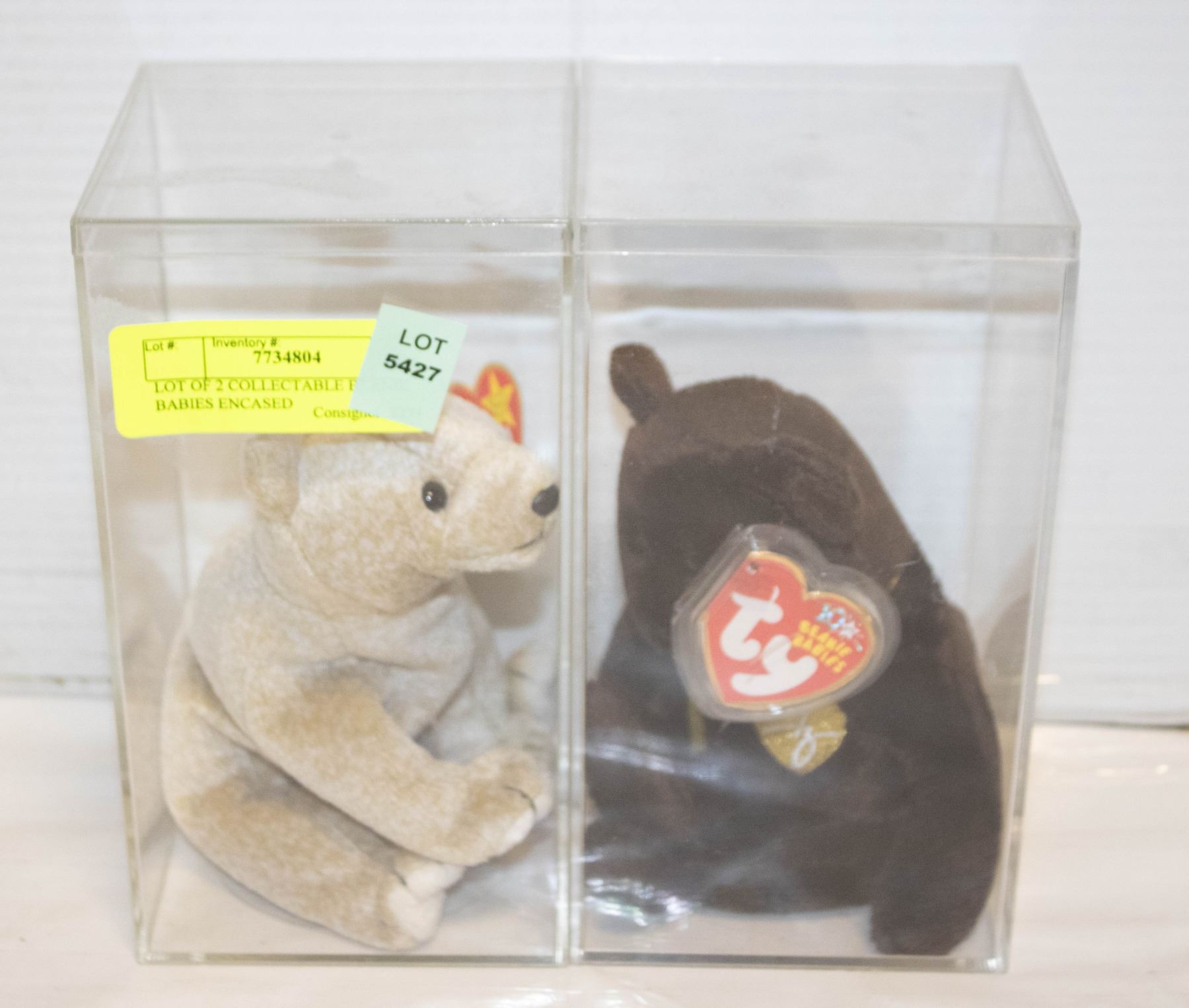 LOT OF 2 COLLECTABLE BEANIE BABIES ENCASED