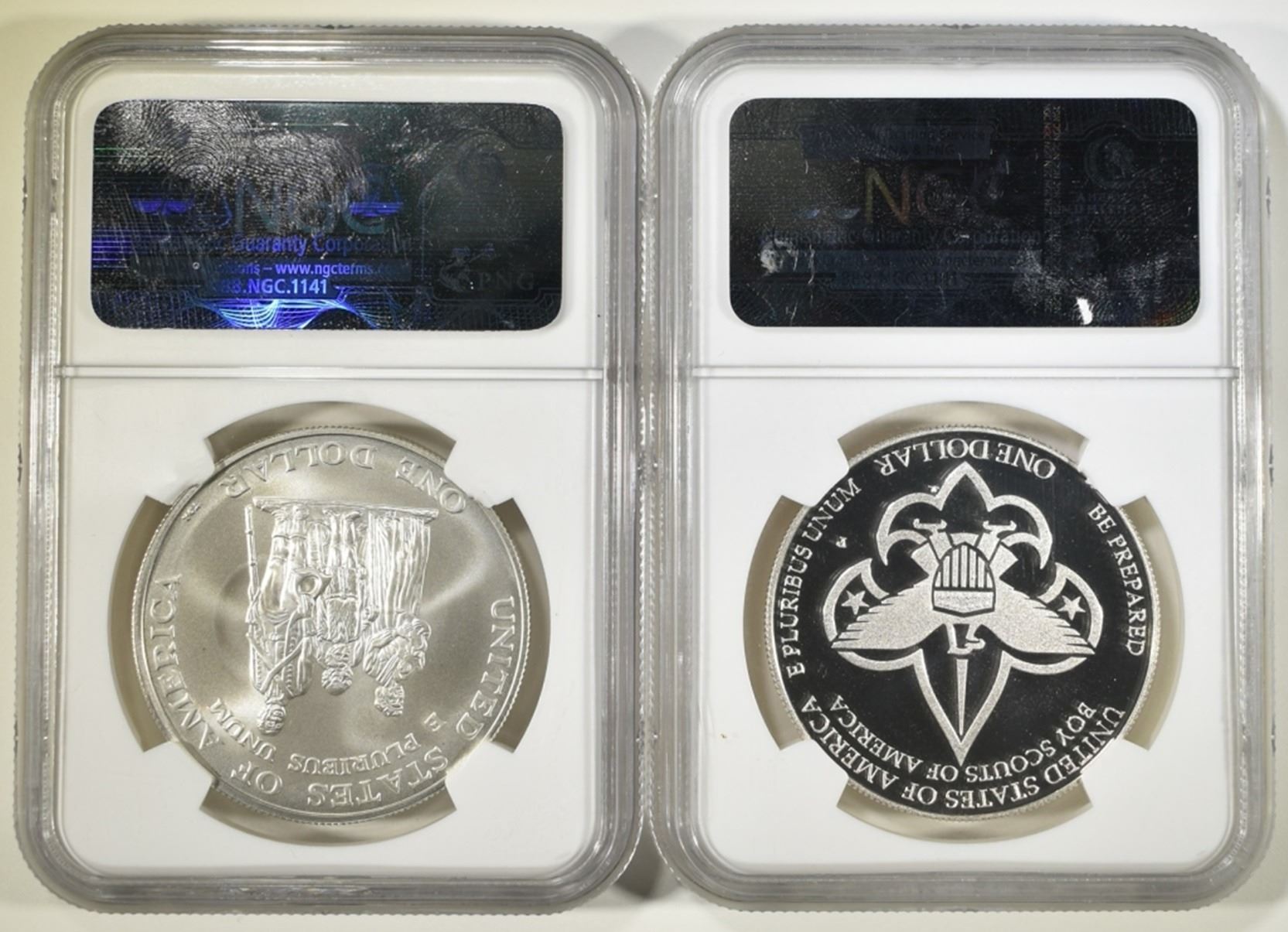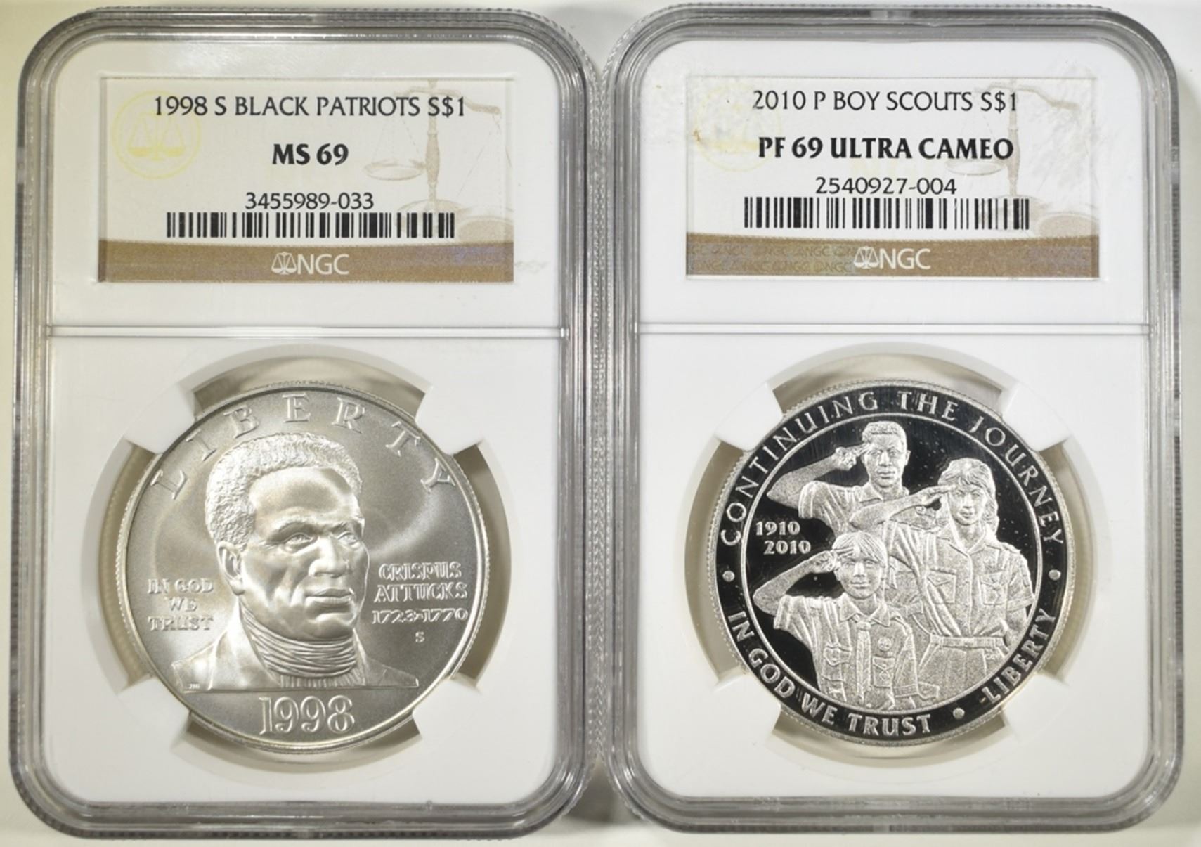 1998 S BLACK PATRIOTS NGC MS 69, 2010 BOY SCOUTS NGC PF 69 ULTRA CAMEO ESTIMATE $80 - $120.