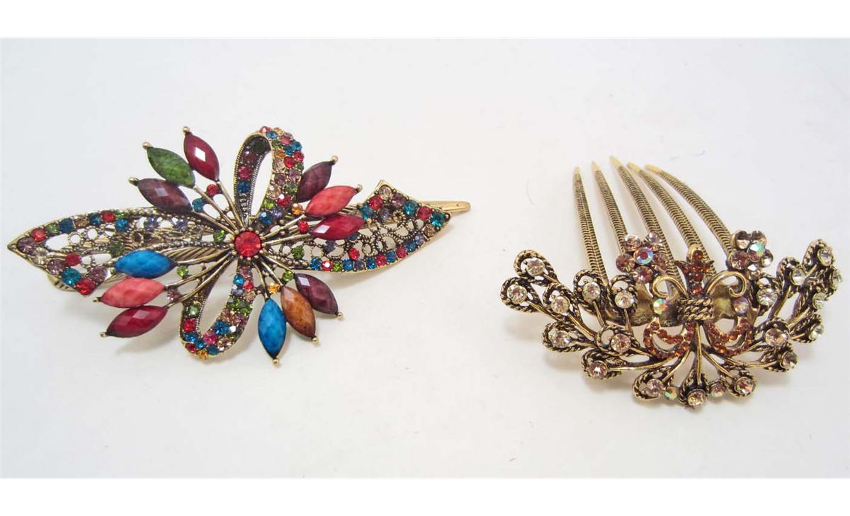 LOT OF 2 COSTUME ACCESSORIES- HAIR COMB & BARRETTE CLIP