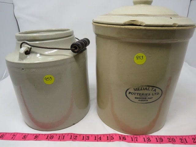 LOT OF 2 CROCKS - ONE 1 GALLON, ONE 2 GALLON *SOME CHIPS*