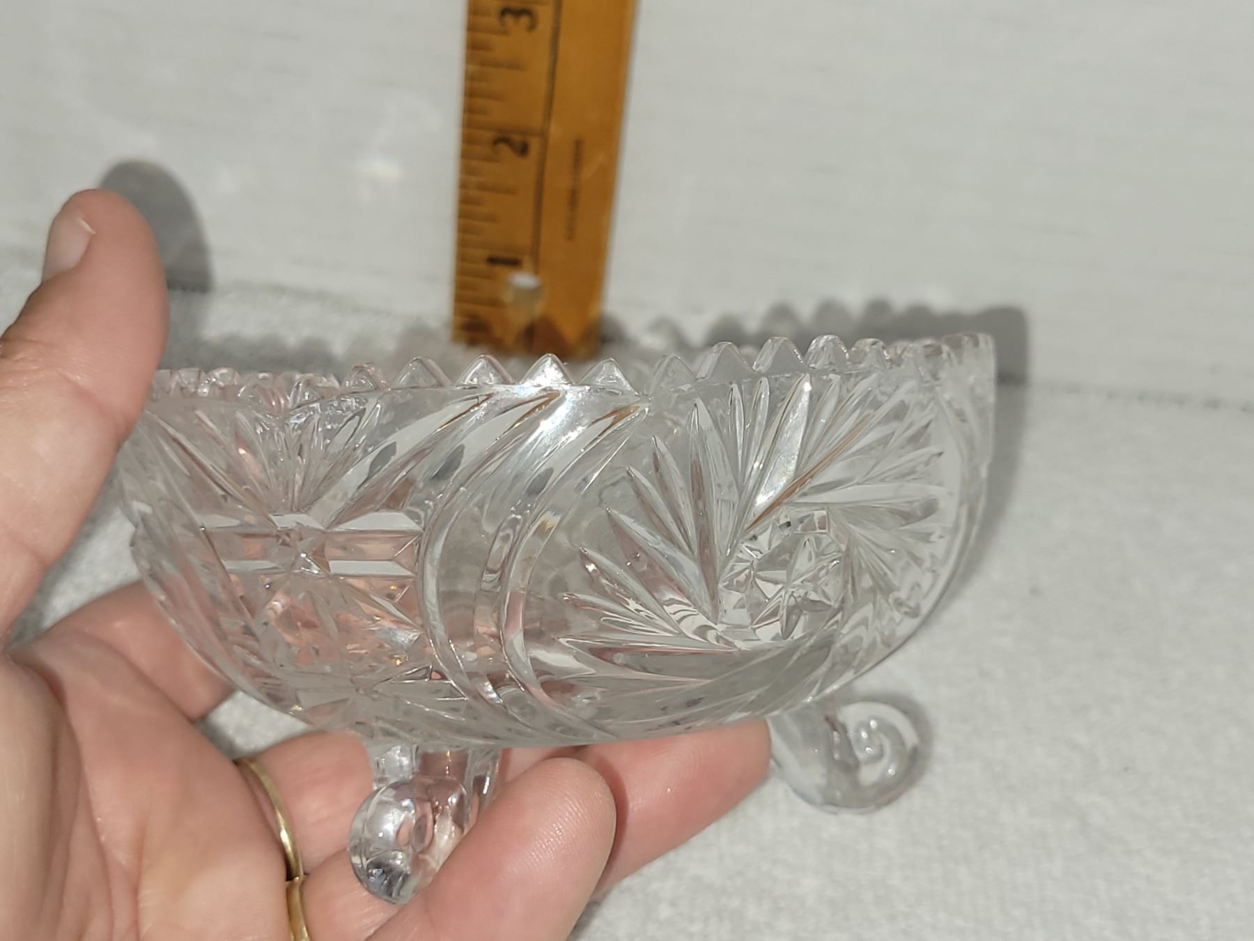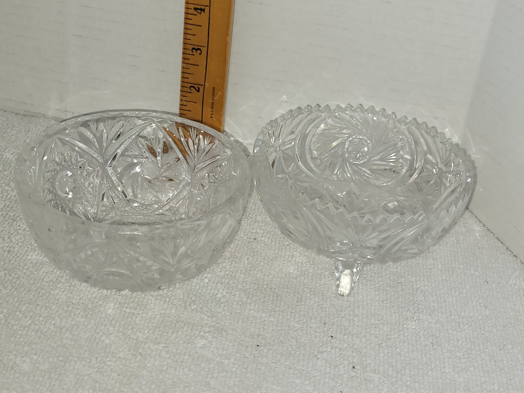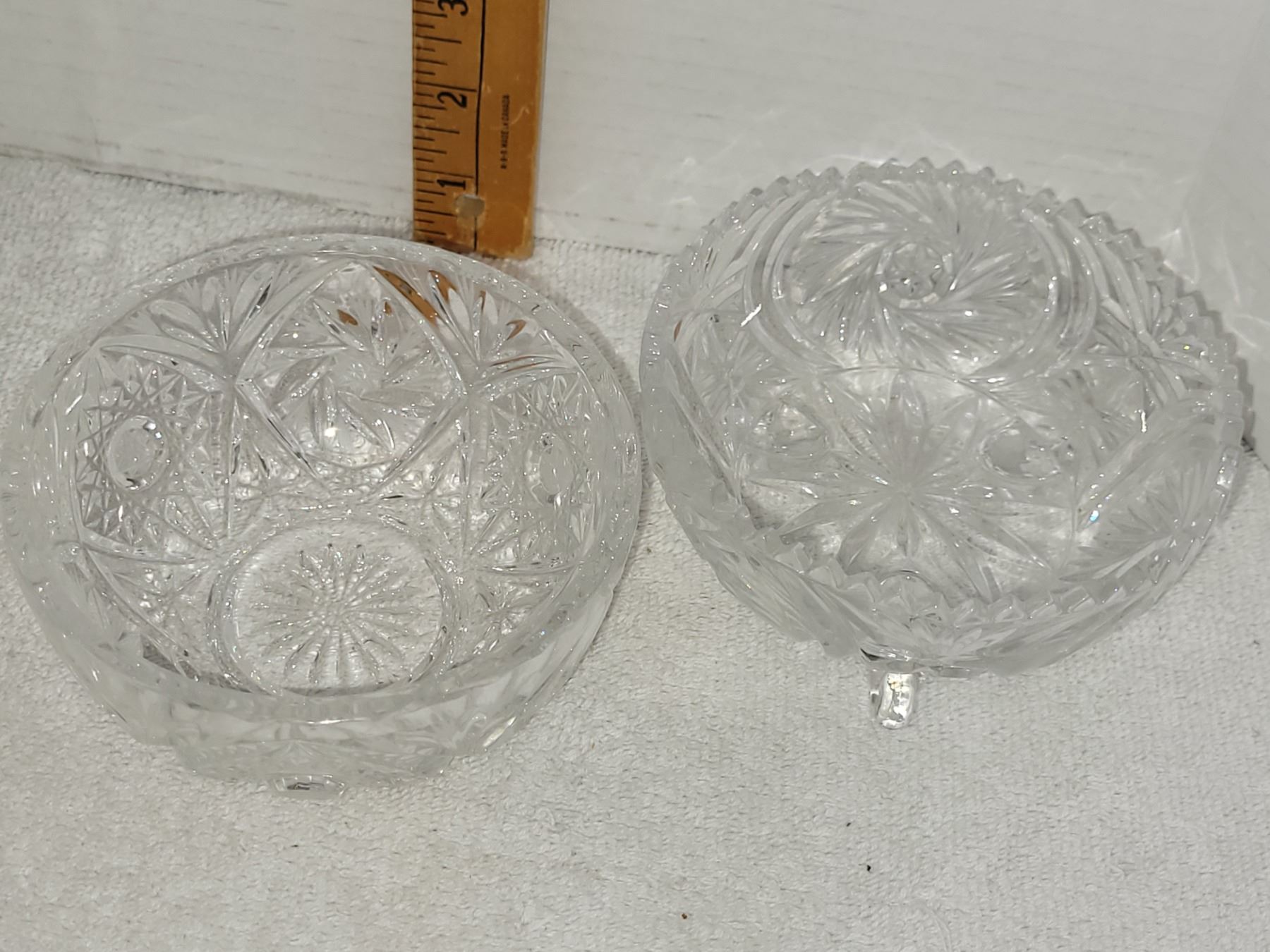 LOT OF 2 CRYSTAL CANDY DISHES (FOOTED AND NON FOOTED). MEASURES 4.5" (BOTH)
