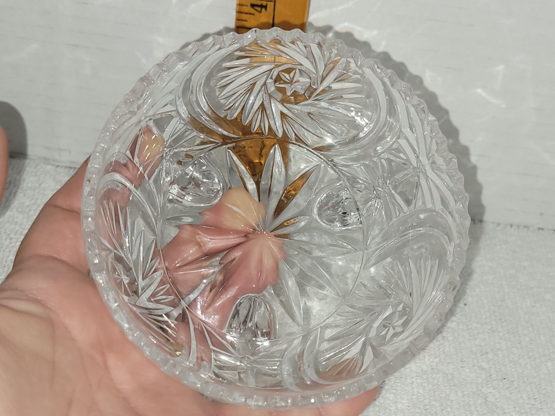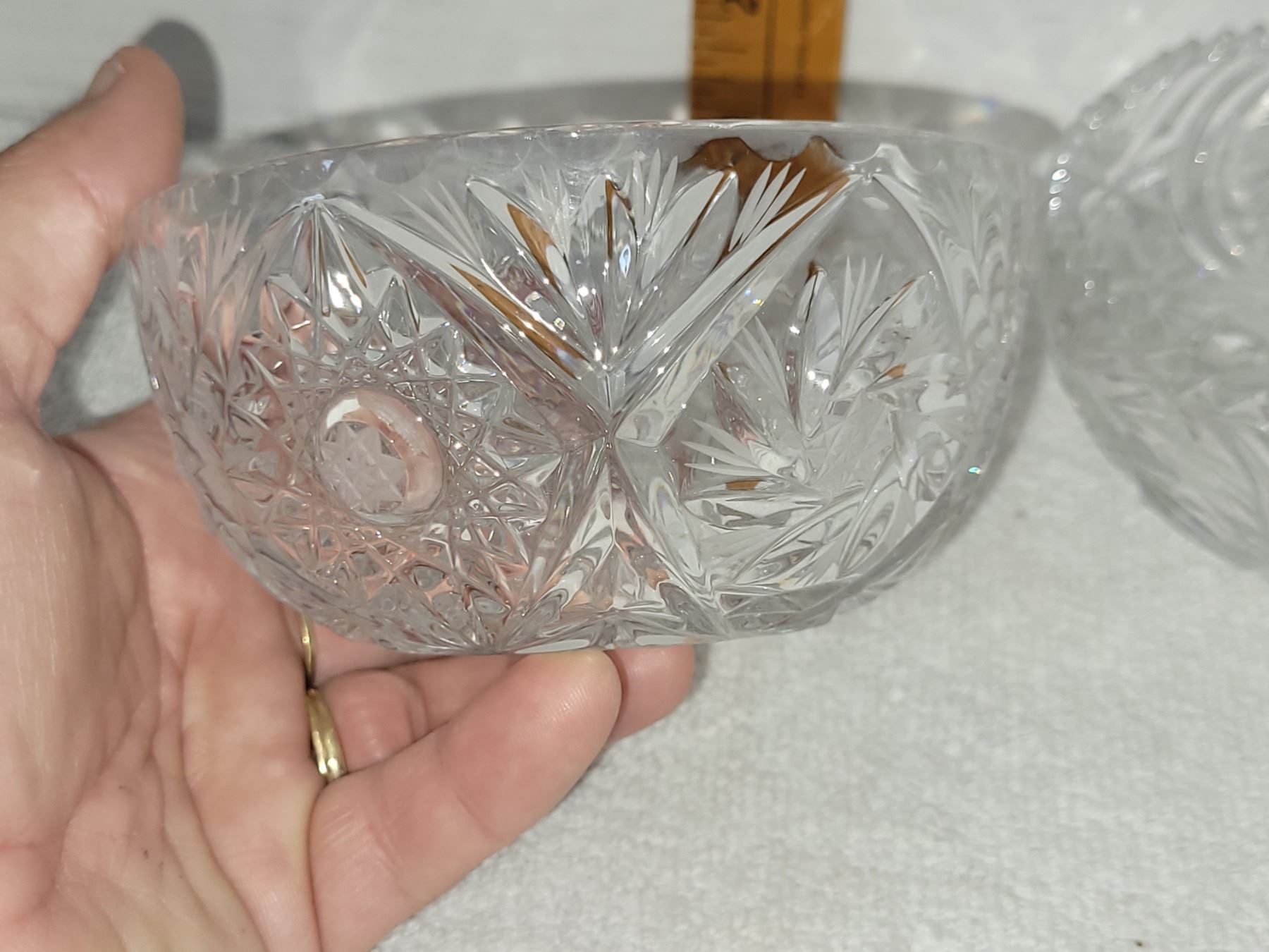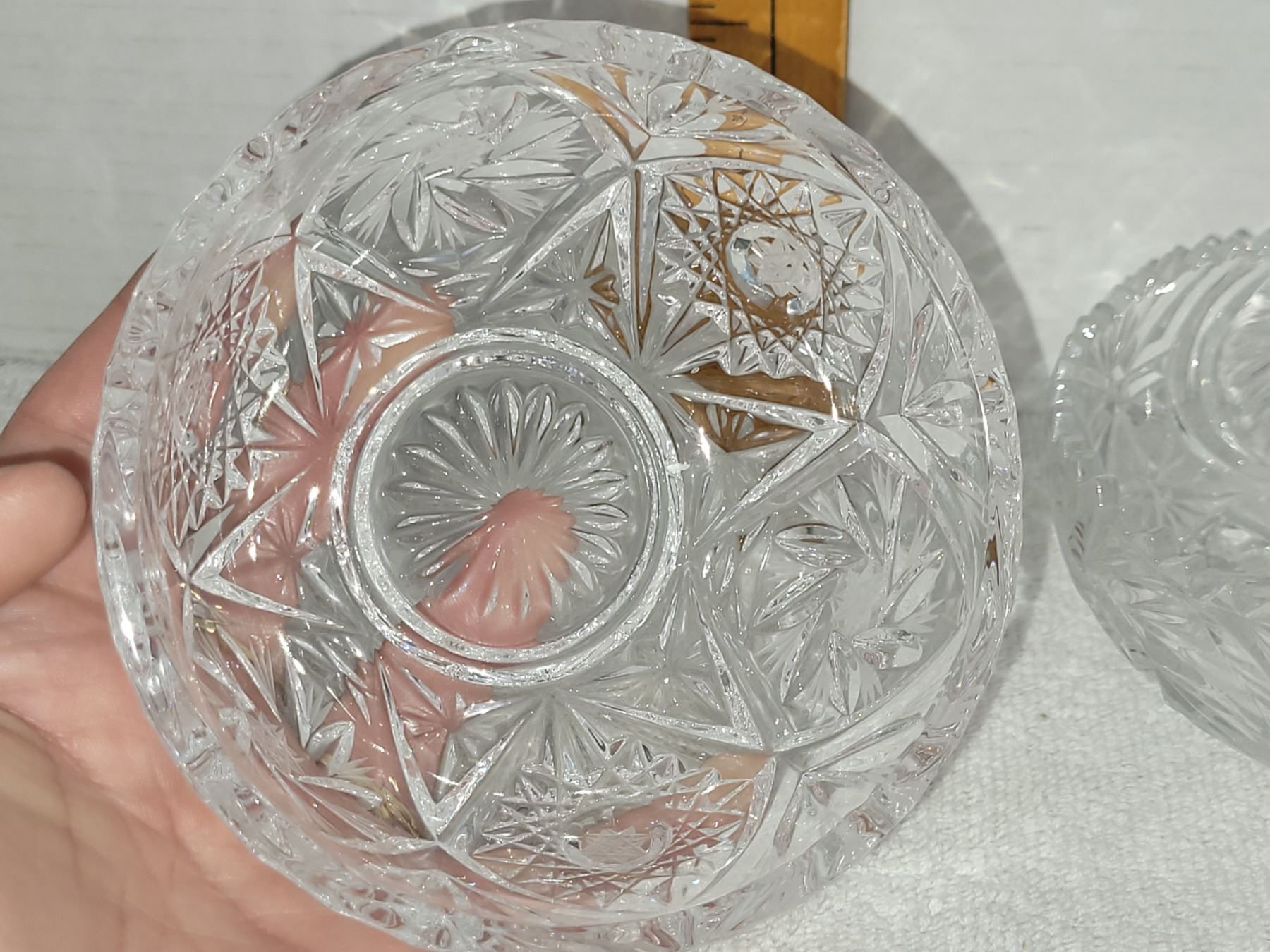 LOT OF 2 CRYSTAL CANDY DISHES (FOOTED AND NON FOOTED). MEASURES 4.5" (BOTH)