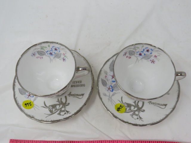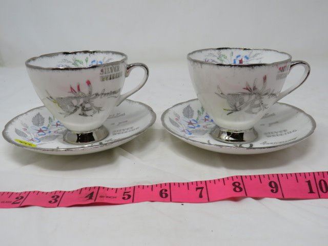 LOT OF 2 CUPS & SAUCERS (SILVER WEDDING)